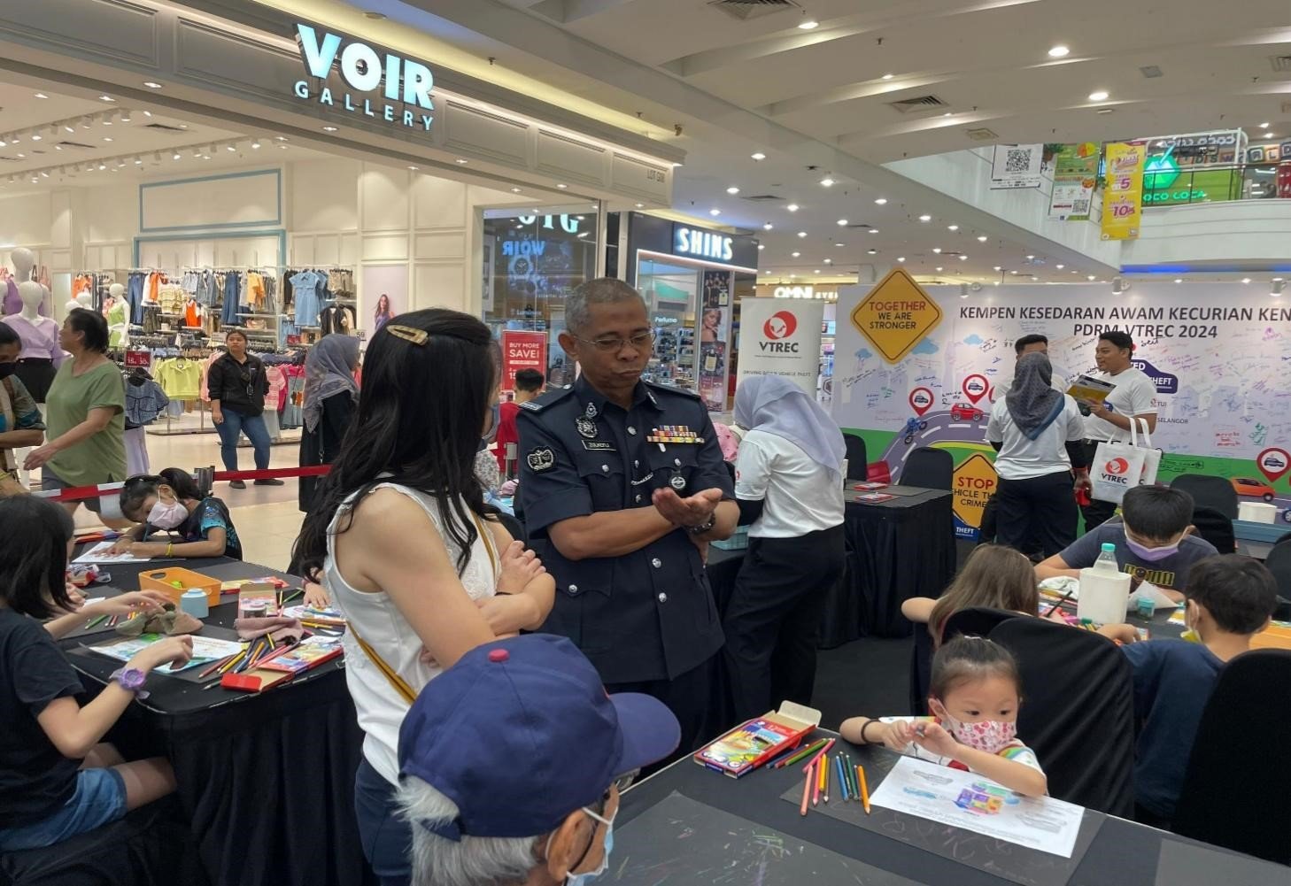 KEPONG, 13 July 2024: The Vehicle Theft Reduction Council (VTREC) together with the Jabatan Pencegahan Jenayah dan Keselamatan Komuniti (JPJKK) of Ibu Pejabat Polis Daerah (IPD) Sentul, is continuing its campaign to increase public and elementary school awareness of vehicle theft in the Sentul district. The mini-campaign was held at Kepong’s AEON Mall Metro Prima.