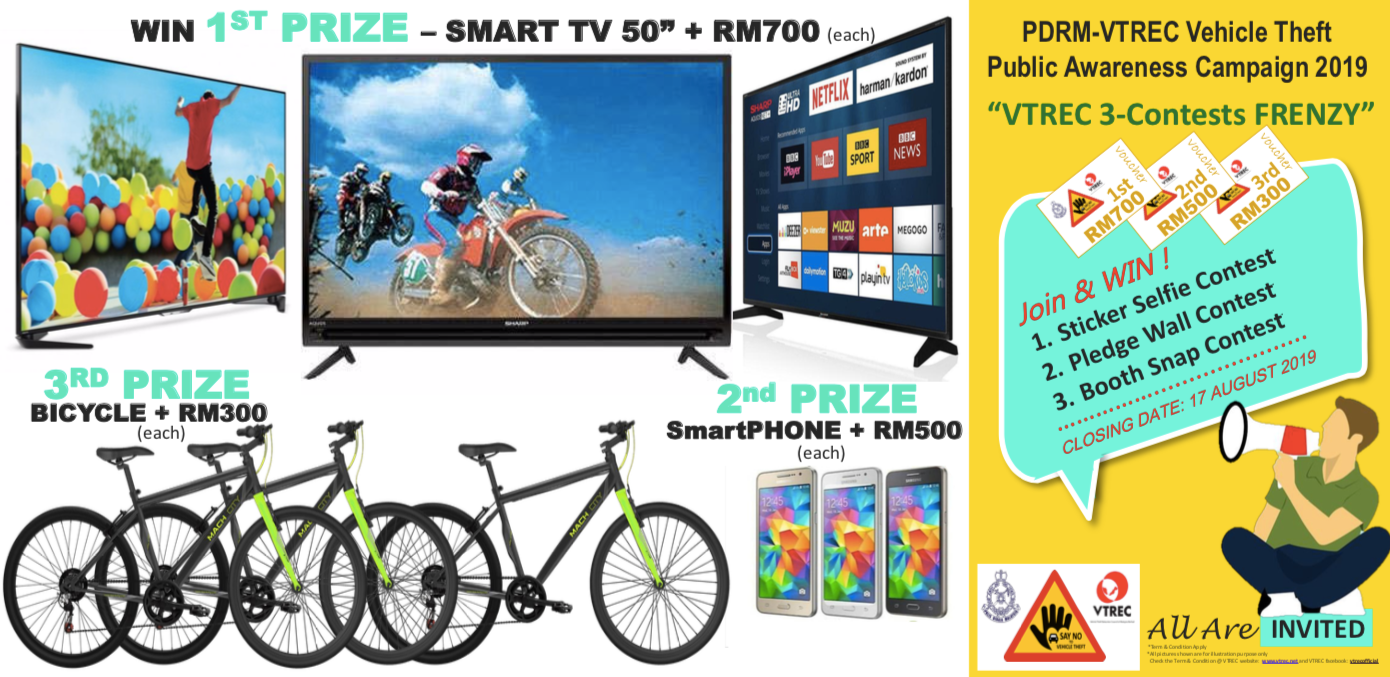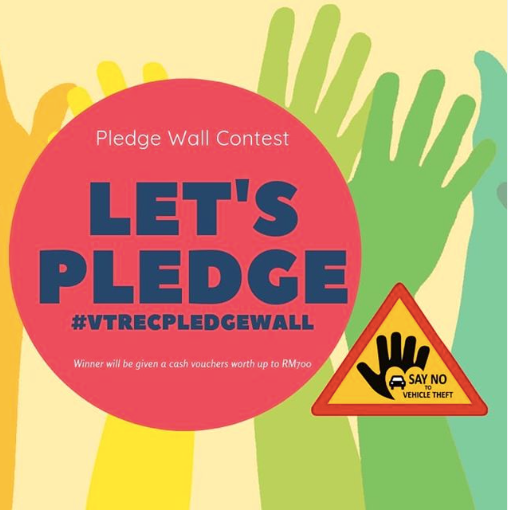 Create Your Best Pledge Wall Contest (“#VTRECPledgeWall Contest”)is organized by Vehicle Theft Reduction Council of Malaysia Berhad (771609-T), hereby known as the “Organizer” or “VTREC”. This contest consists of five (5) round for a continuous period, from 16th July 2019, Tuesday 10.00am to 17th August 2019, Saturday, 11:59pm (“the Contest Period”)or any period as notified by the Organizer on VTREC Instagram and Facebook. The Organizer may, at its sole and absolute discretion extend or shorten the Contest Period at any time without any prior notice to any party (the “Extended or Shorten Period“).
